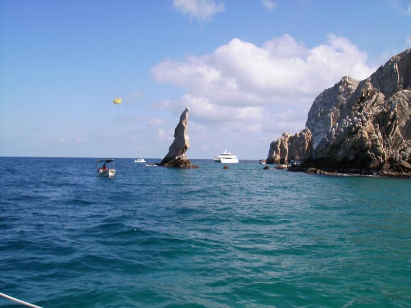 Neptune's Neptune's Finger in Cabo San Lucas. Cabo San Lucas is a fabulous destination. We usually catch Bonito Tuna or Blue fin tuna and even Dorado. We can anchor out in the bay for free or if available we can stay in a slip. It is expensive, $140 per night for a slip, but we stay right down town. This is a nice treat to spend the night worry free in Cabo where there is fine dining and famous bars like Cabo Wabo. There is also big game sport fishing and great scuba diving shops and sites. We could easily spend a few days in cabo relaxing, partying and having fun with all types of water sports.
